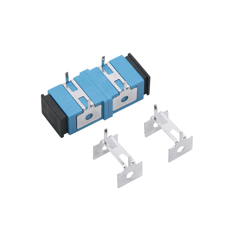 SC fiber optic adapter with electroplated sharp corner spring plate - tin plated