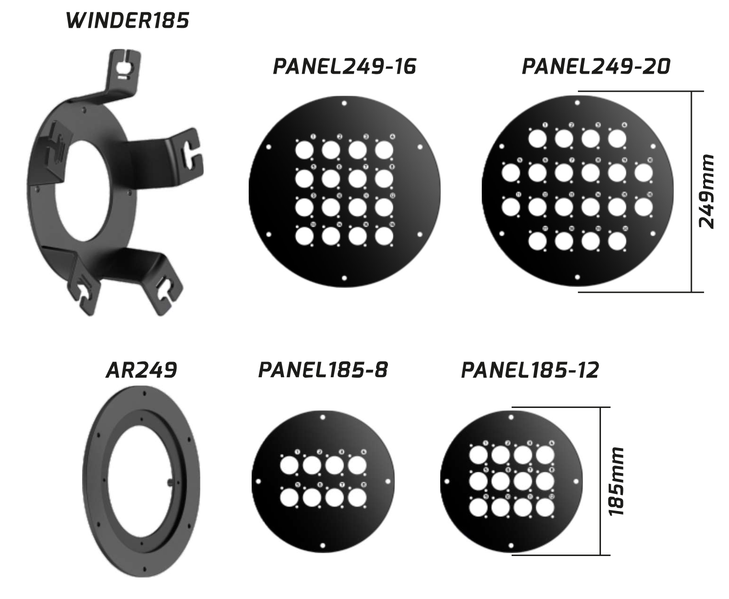 Note | Winder 185, Panel 249-16/20(holes) & AR249 + Panel 185-8/12(holes) Selectable, with wheels |